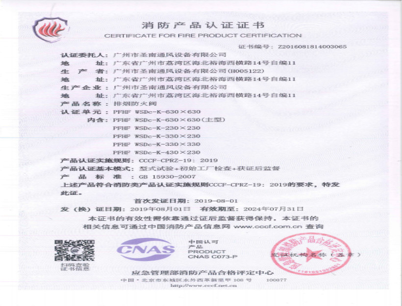 排煙防火閥-分型證書PFHF-WSDc-K-630×630