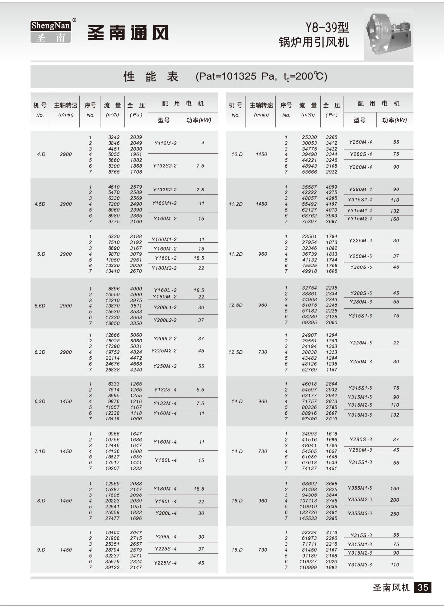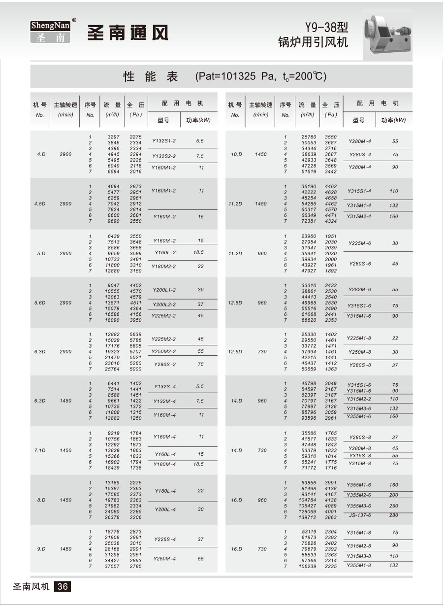 引風(fēng)機(jī)的配用電機(jī)功率是指該風(fēng)機(jī)在選定流量和壓力時(shí)輸送溫度達(dá)200℃的氣體長(zhǎng)期穩(wěn)定工作的功率,若輸送氣體的溫度還達(dá)不到200℃則須通過(guò)閘門(mén)等手段減少進(jìn)入風(fēng)機(jī)的風(fēng)量或加大電機(jī)的功率,否則容易造成電機(jī)或電氣故障,乃至燒毀!