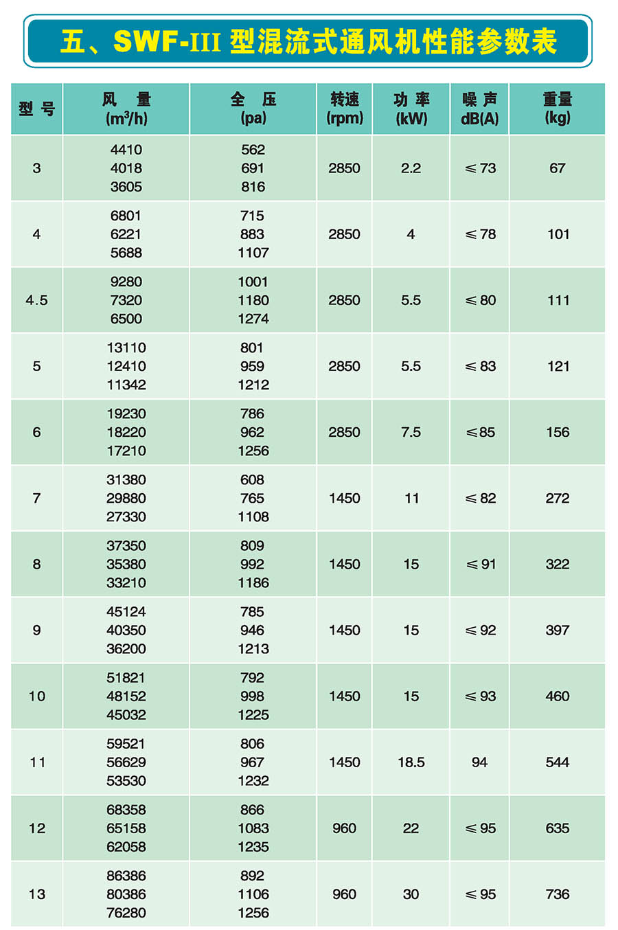 二、SWF系列混流式通風(fēng)機特點