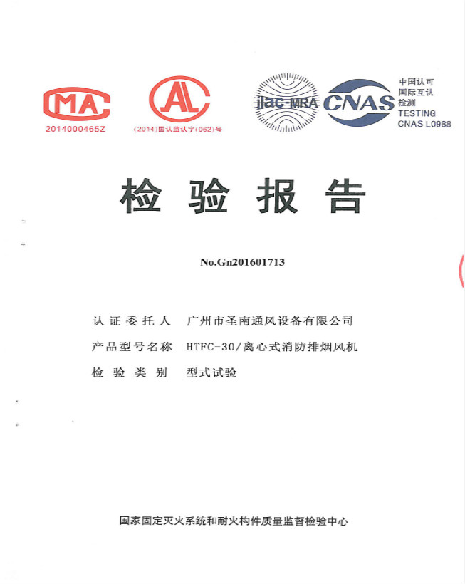 HTFC-33-A 離心式消防排煙風(fēng)機(jī)檢驗(yàn)報(bào)告