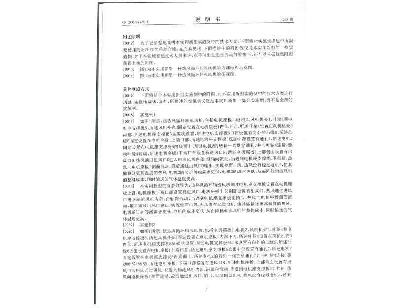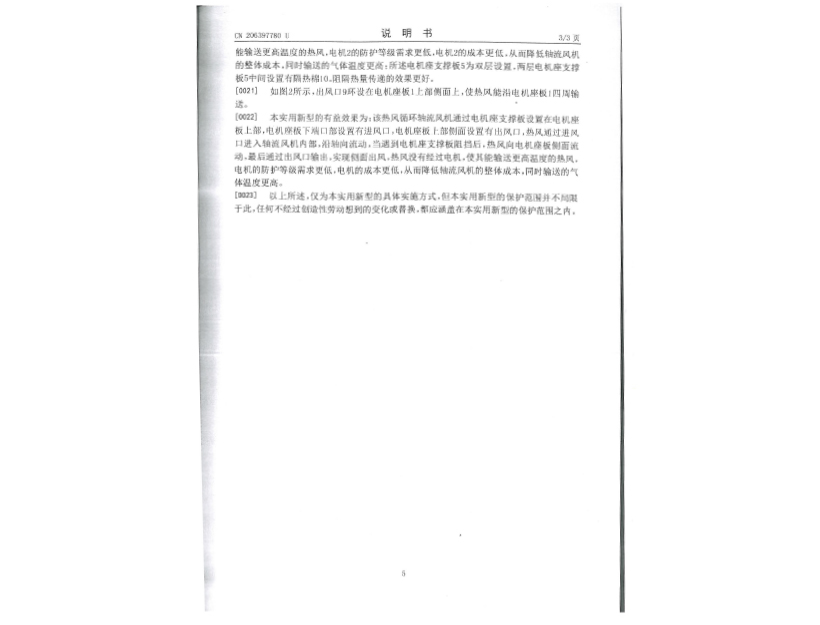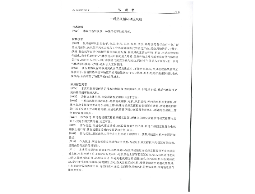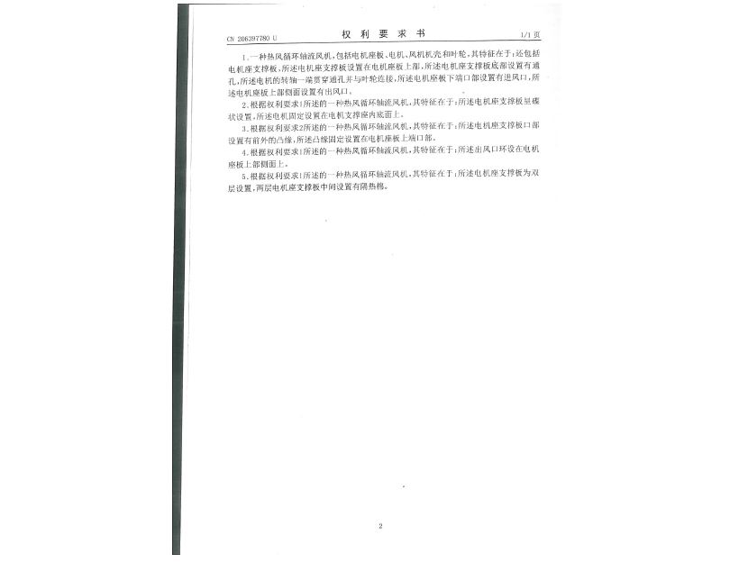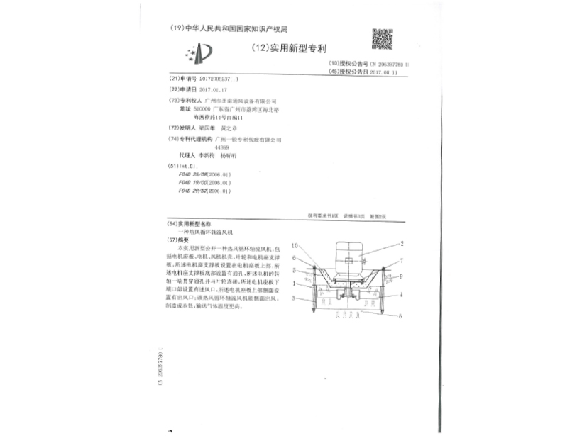 實用新型專利證書 一種熱風循環(huán)軸流風機
